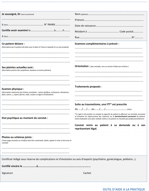 Aide-mémoire à la rédaction du certificat médical validé par l'ordre des médecins