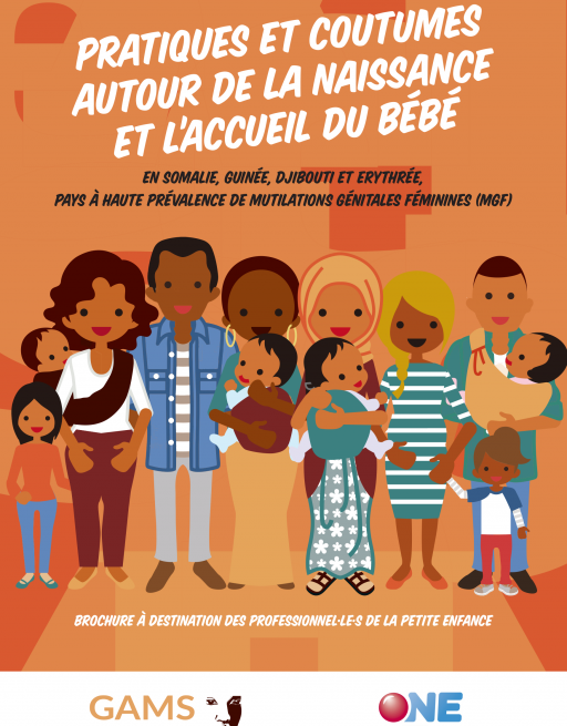 Brochure à destination des équipes de l'ONE afin de mieux connaître les différentes pratiques autour de la naissance et de l'accueil de l'enfant dans les pays concernés par les mutilations génitales féminines pour les aider dans leur travail et la communication avec les parents.