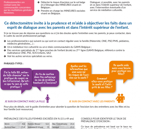 - assurer un suivi d’une fille déjà excisée et de ses sœurs à risque de l’être, dans le dialogue si possible, en collaboration avec les parents et l’enfant.