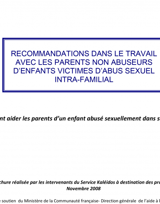 Recommandations à destination des intervenants psychosociaux concernant les situations où un travail d'accompagnement est conseillé ou prescrit aux parents d'un enfant qui a été sexuellement abusé au sein de sa famille.